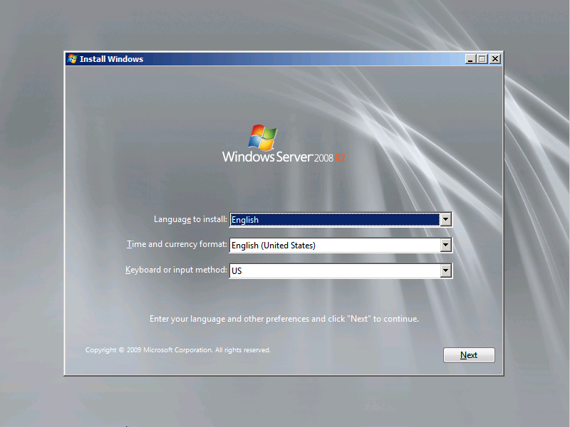 2008 R2 cd’si ile bilgisayarımızı boot ederek başlıyoruz.