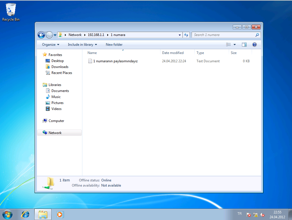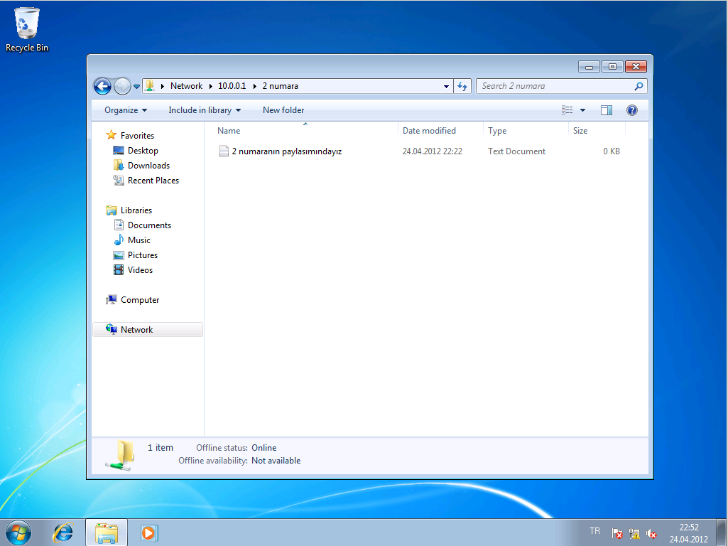Ben her bir bilgisayarda birer paylaştırılmış klasör yarattım.