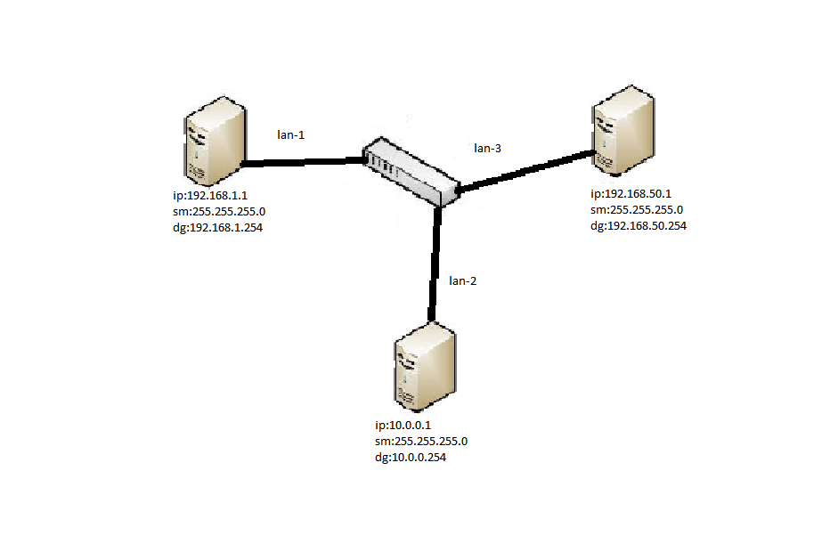 Next ve sonrasında finish dedikten sonra 3 farklı networkte bulunan bilgisayarlarımız birbiriyle görüşebilecektir.
