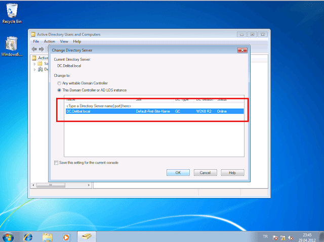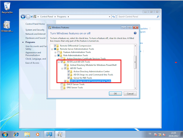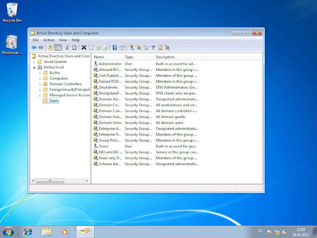 Görüldüğü gibi Windows 7 de RSAT aracılığı ile AD rolünü kullanmış olduk.