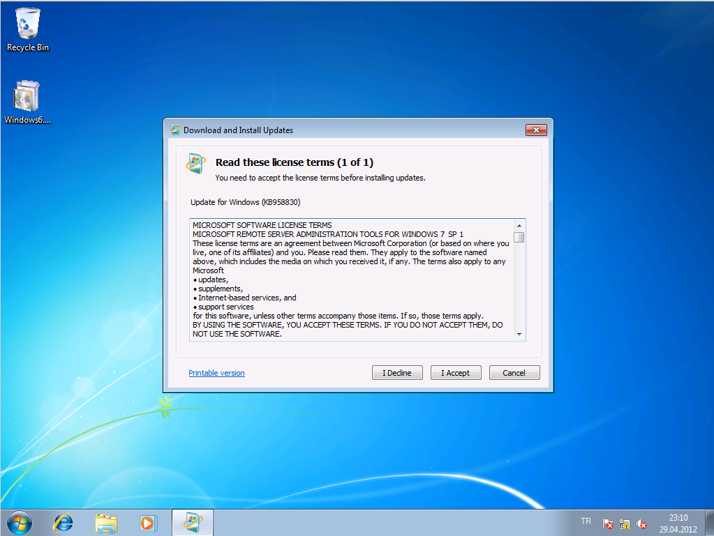 Öncelikle RSAT kuracağımız bilgisayarda dikkat etmemiz gereken şey Windows Updateleriinin güncel olmasıdır.