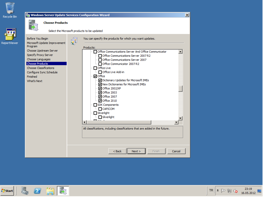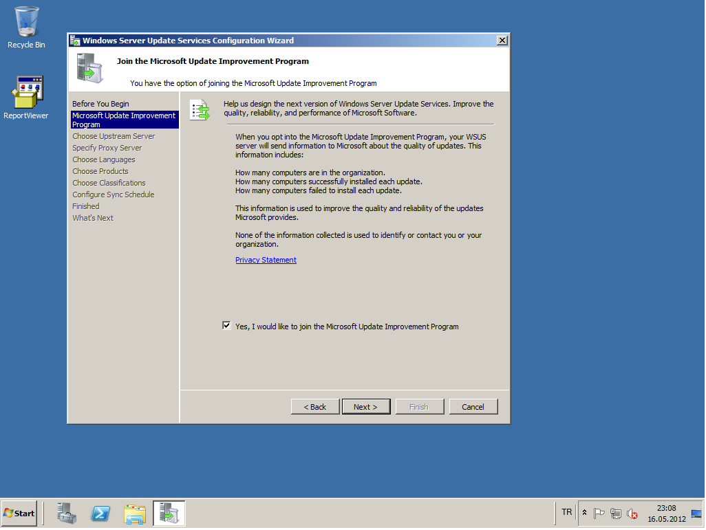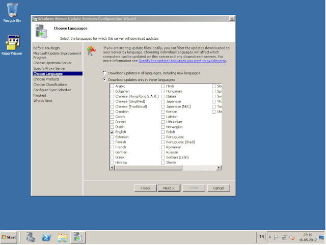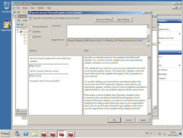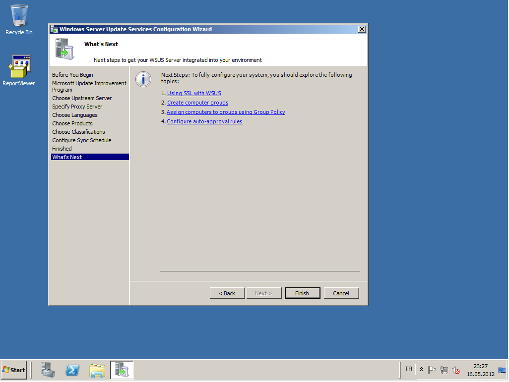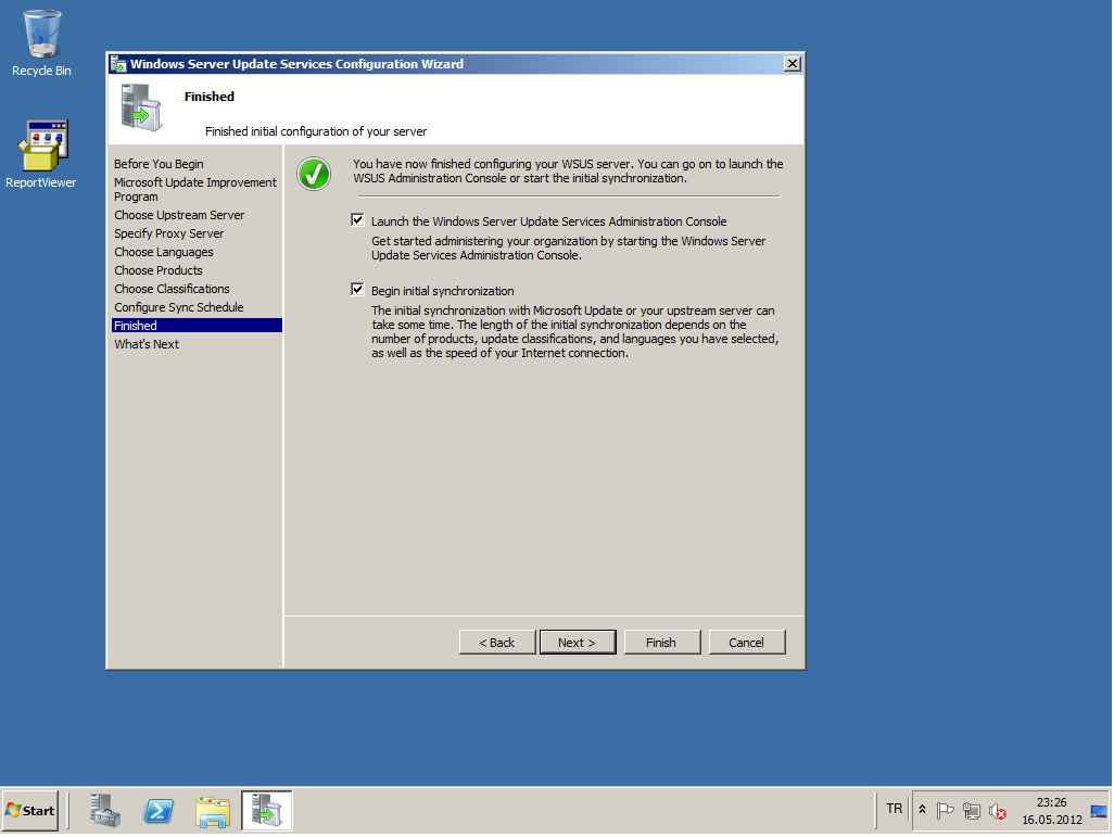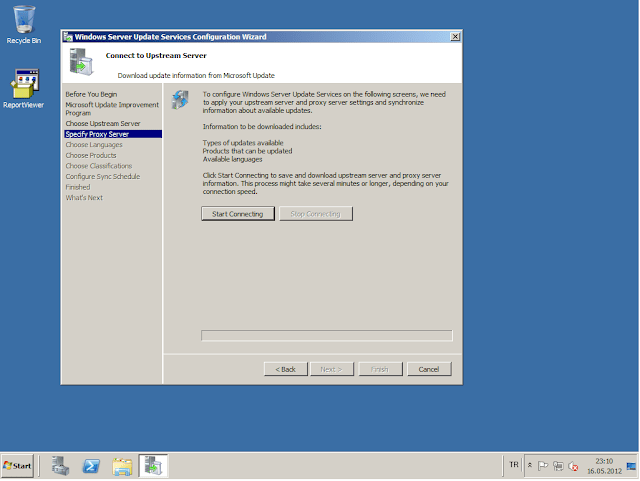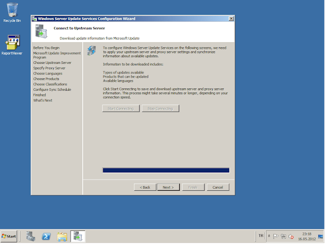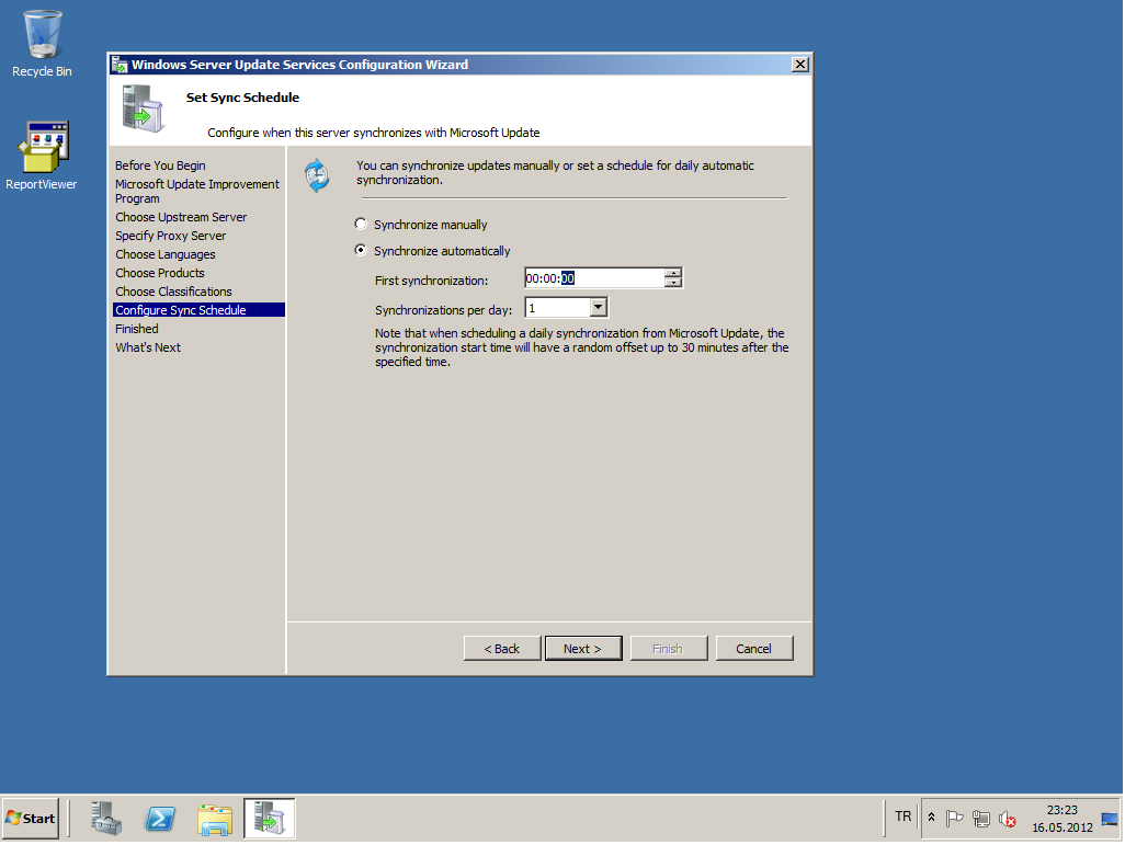 Üstteki seçeneği yani Windows update server üzerinden senkronize olucağını seçerek devam ediyoruz.