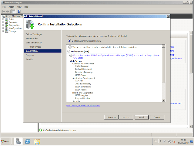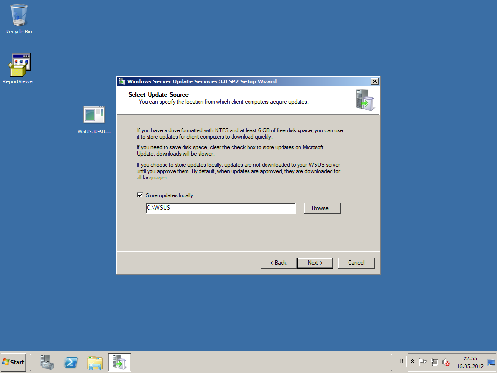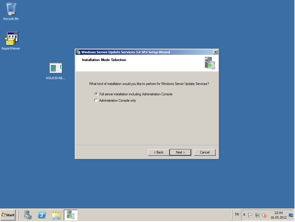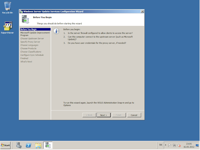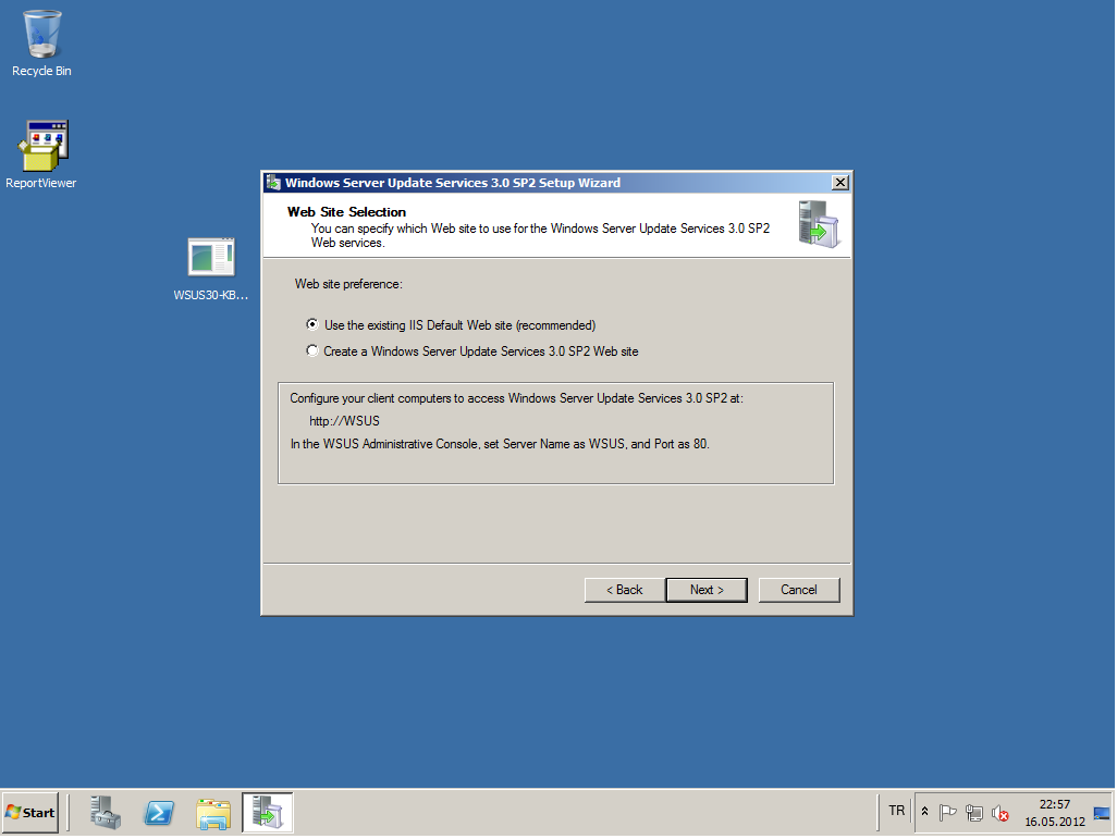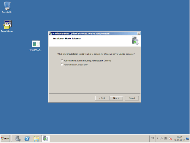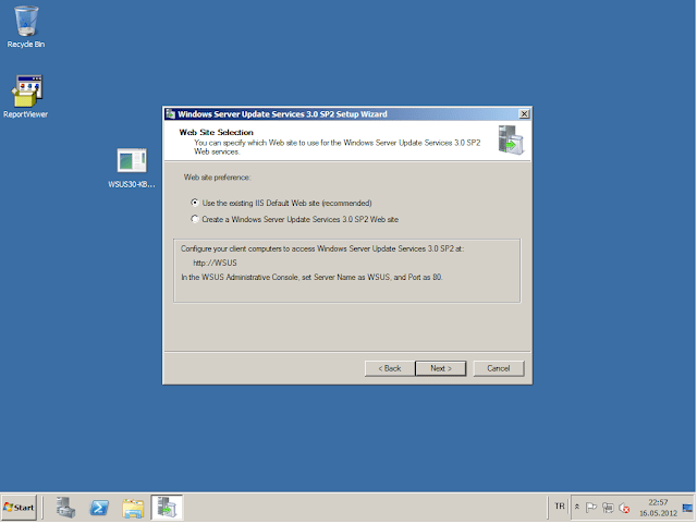 WSUS yüklenmeden önce gerekli olan ön koşullardan birisi tamam.2. ön koşul aslında zorunlu değil eğer report viewer i yüklemezsek WSUS yüklerken report alamıyacağımıza dair bir uyarı alıcağız.