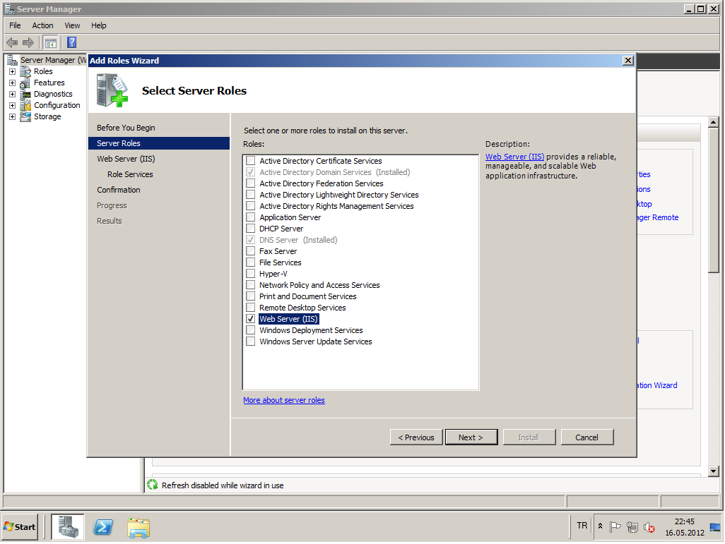 - Wsus olarak yapılandıracağımız servera gerekli bileşenleri ile yüklenmiş bir IIS role bulunmalı.