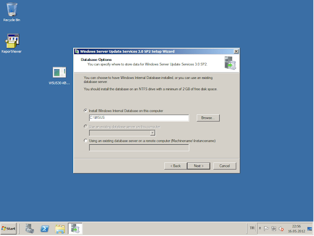 Wsus yüklemek için gerekli olan bütün ön koşulları tamamladık.