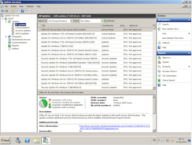 Wsus’un amacı ise windows update serverlardaki bizim belirliyeceğimiz gerekli updateleri kendi üzerine alıp, bütün clientların tek tek internet üzerinden o update’i windows update serverlardan çekmesi yerine kendi üzerinden çekmesine olanak sağlar.