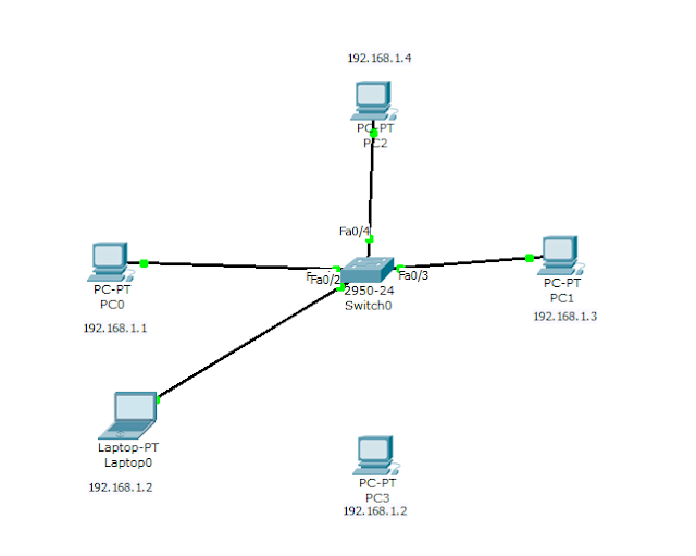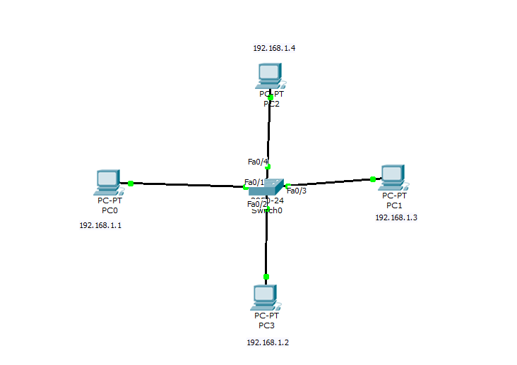 Bu şekilde bir yapımız bulunmaktadır.Şimdi Switch port security için gerekli configurasyonu Switchimizde yapılandıralım.