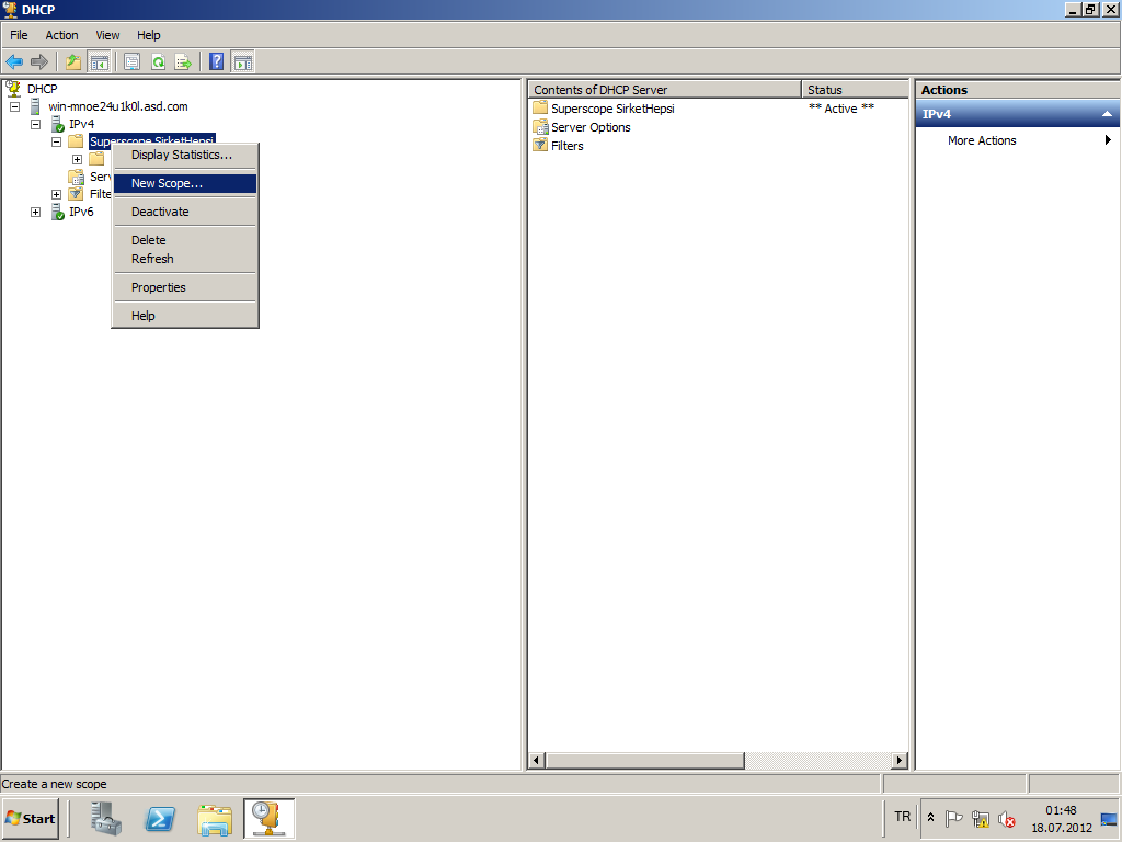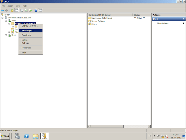 IPv4 üstünde sağ tıklayıp new superscope diyoruz.