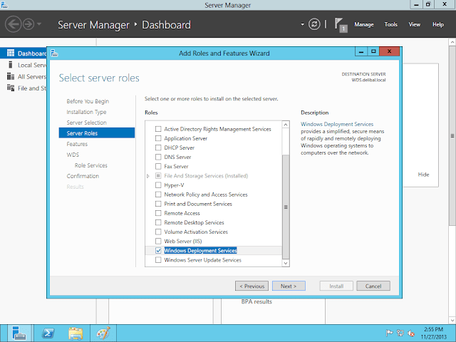 Role kısmında Windows Deployment Services i seçiyoruz ve next diyoruz.