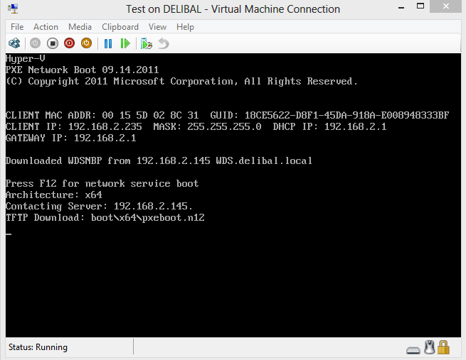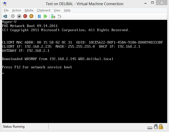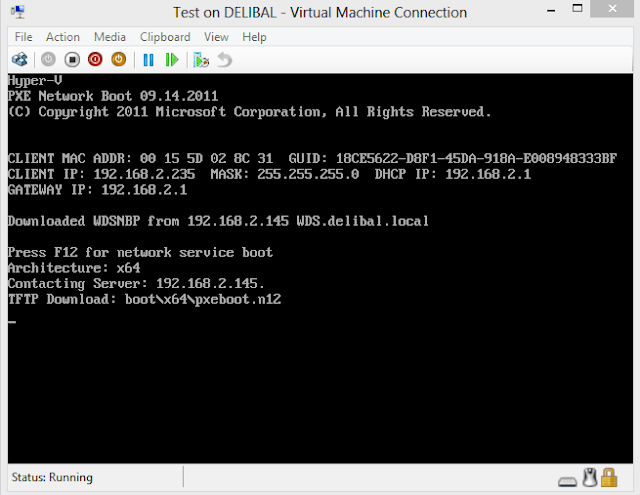 Test sanal makinamıza network adaptörü olarak legacy network adaptörü tanımlıyoruz. Legacy network adaptörünü WDS ile aynı sanal networke çekiyoruz. Ve Tes sanal pc mizi çalıştırıyoruz.