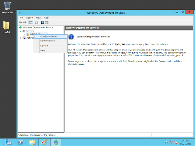 Servers sekmesinin altında WDS serverimiz bulunmakta burdan Configure Server diyoruz.