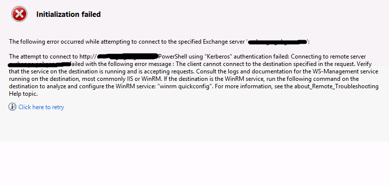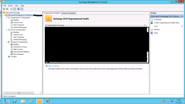 Problemde bana iletilen Exchange 2010 SP3 HUB+CAS+MBX rollerinin üzerinde bulunduğu exchange sunucunun EMC konsolu açılışta hata vermekteydi.