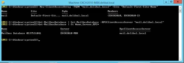Şimdi sırada yapıda bulunan mailbox database’lerin RPC client olarak oluşturduğumuz CAS Array’i görmesi gerekmektedir.