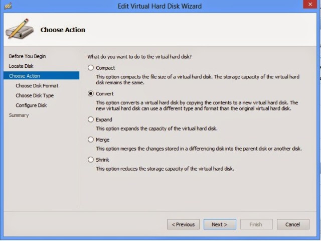 Disk üzerinde ne gibi bir işlem yapılacağı soruluyor diskin tipini değiştireceğimiz için “convert” diyoruz ve next diyoruz.