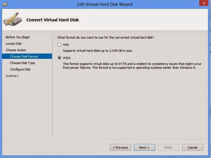 VHDX olduğunu belirtiyoruz ve next diyoruz.