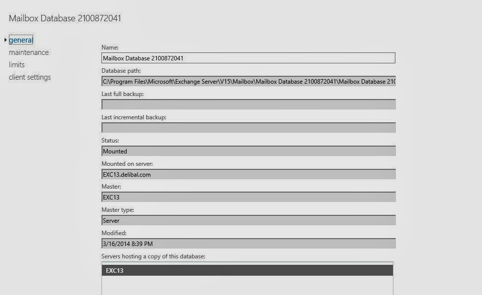 Konumuz olan mailboxdatabase özelliklerine geri dönüyoruz.