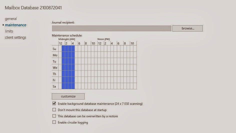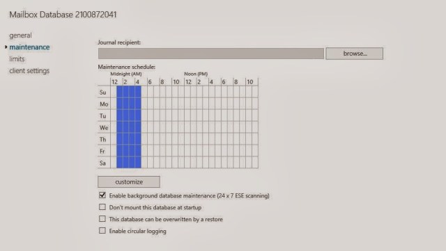 Enable bacground database maintenance : Bu tick işareti işaretli ise yukarıda belirtlien zaman aralığında database bakıma alınır.