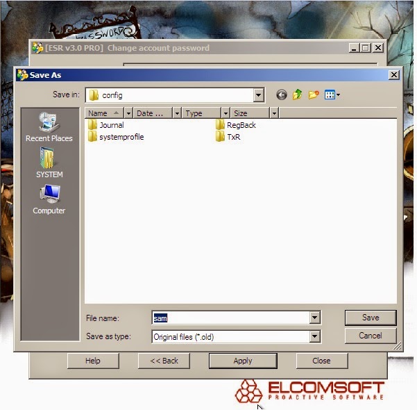 Ben şifreleri bilmediğim ve yedeğin onemli olmadığı için sam dosyasının mevcut bulunduğu dizine direkt olarak kaydetmesini söylüyorum ve save diyorum.