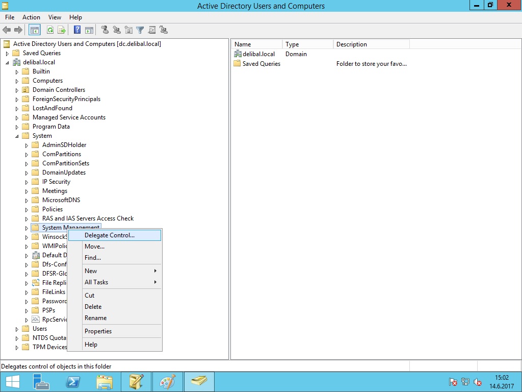 System kısmını genişletip Sonrasında System Management Container’ı üzerinde sağ tıklayıp Delegate Control diyoruz.