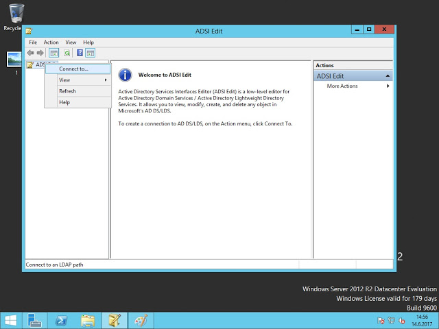 Açılan pencerede ADSI Edit yazan kısıma sağ tıklayıp connect to diyoruz.