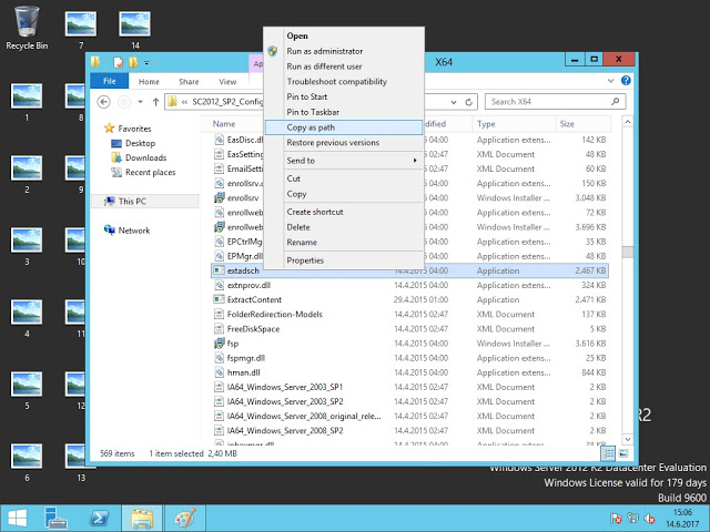 Bir sonraki işlemimiz Active Directory Schema genişletme olacaktır.Domain Controller üzerinde SCCM 2012 kurulum medyasının içerisine giriyoruz ve “extadsch” sağ tıklayıp “copy as path” diyoruz.