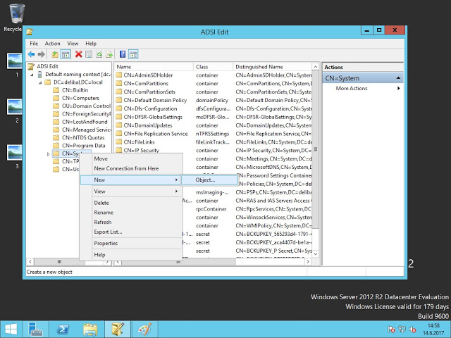 Açılan menüde domain’i genişletip “System” kısmında sağ tıklayıp New > Object diyerek devam ediyoruz.