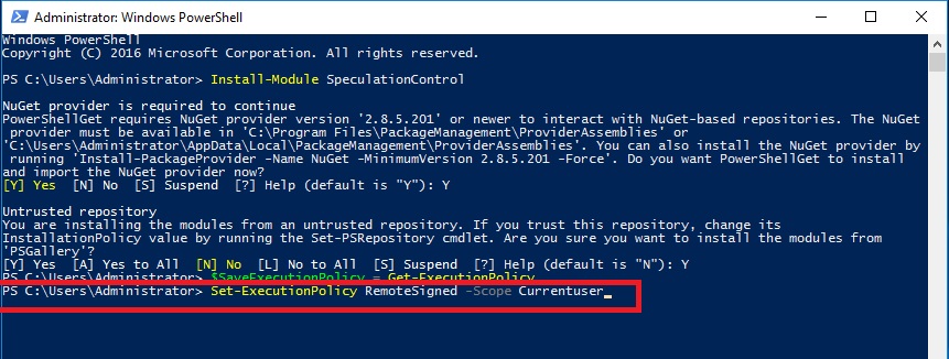 Son olarak ExecutionPolicy’imizi eski haline Set-ExecutionPolicy $saveExecutionPolicy -Scope CurrentUser komutu ile getirebiliriz.