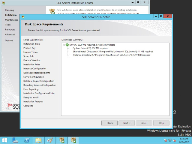 Kurulum için disk gereksinimlerini check ediyoruz ve devam ediyoruz.