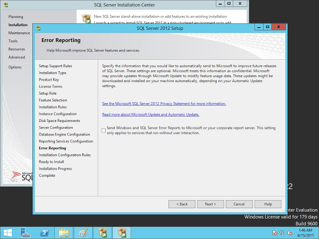 Error Reporting kısmında hiç bir işlem yapmadan next diyerek geçiyoruz.