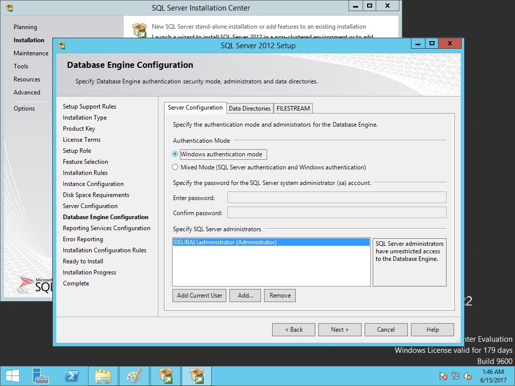 SQL kurulumunu farklı bir sunucu üzerine yapılabilir. Ancak test ortamı olduğu için ben SQL kurulumunu SCCM 2012 kurulumu yapacağımız sunucu üzerine yapacağım.