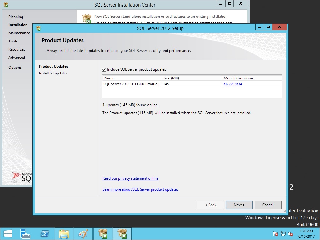 Yükleme öncesi SQL update olup olmadığını kontrol ediyor. Bende 145 MB ‘lık bir update patch buluyor next diyerek devam ediyoruz.