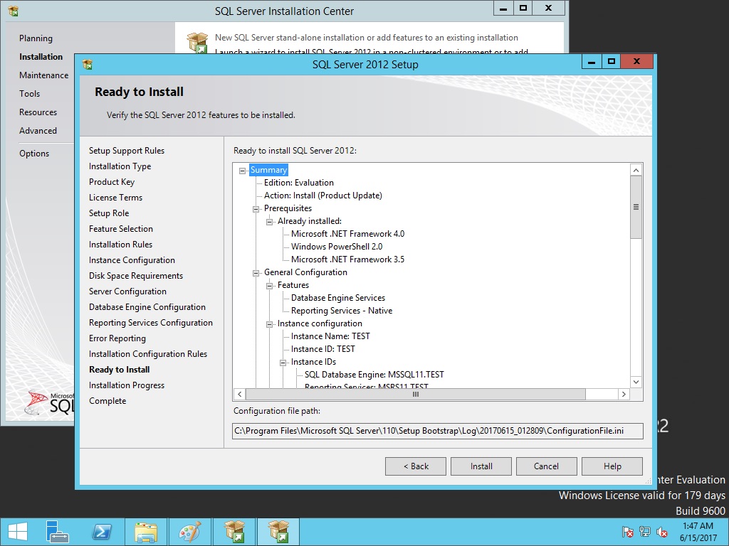 Install diyoruz ve SQL yükleme işlemimiz tamamlanıyor.