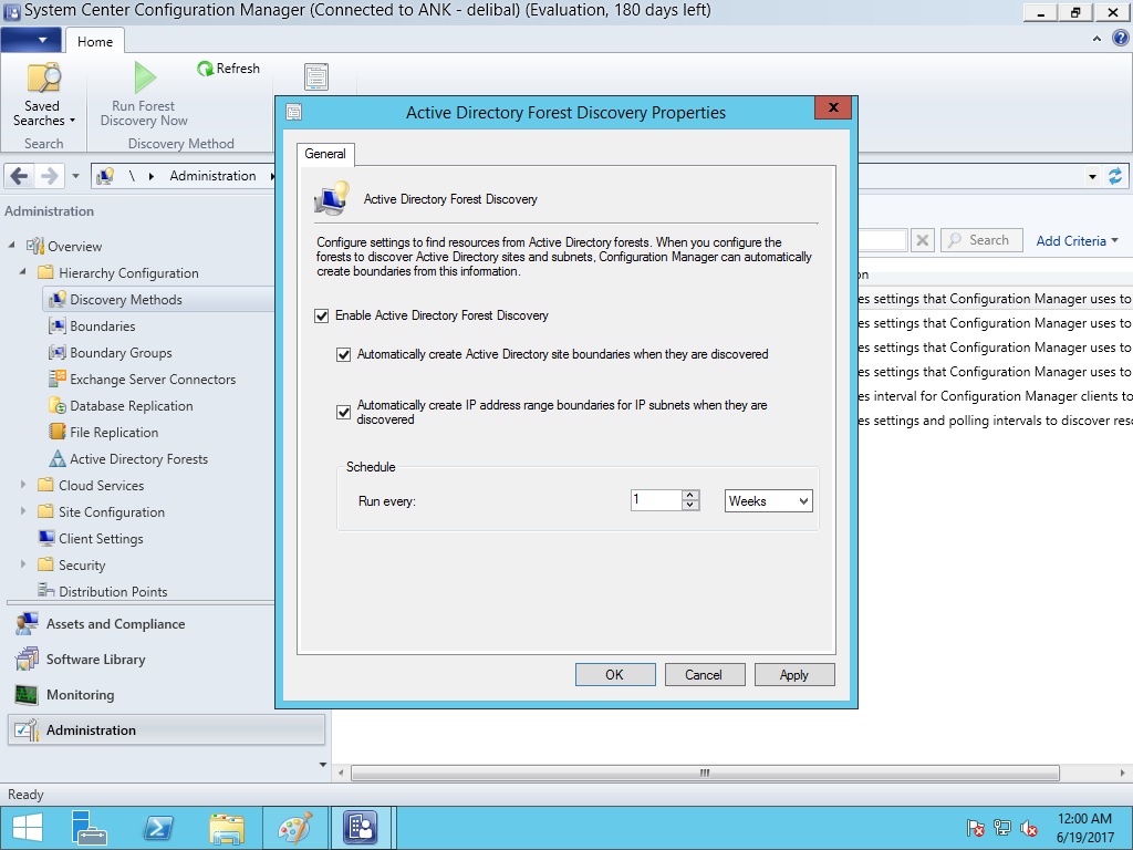İlk yapılandırdığımız keşif metodu Active Directory Forest Discovery