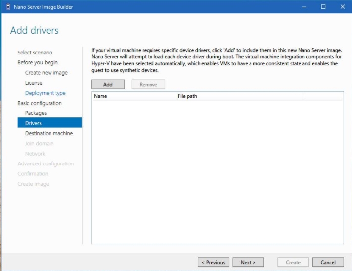 Eğer bir fiziksel image oluşturuyor olsaydık bu kısımdan image’ın yükleneceği fiziksel cihazın driverlarını ekleyebilirdik. Biz VM image kullanacağımız için herhangi bir driver ihtiyacımız bulunmamakta.