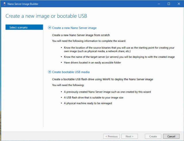 Daha önce Nano Server kurulumu ile ilgili bir yazı yazmıştım. Bu yazıda powershell scriptler ile Nano Server VHD’sini oluşturmuştuk. Bu yazımızda Nano Server’ı Nano Server Image Builder ile oluşturacağız.