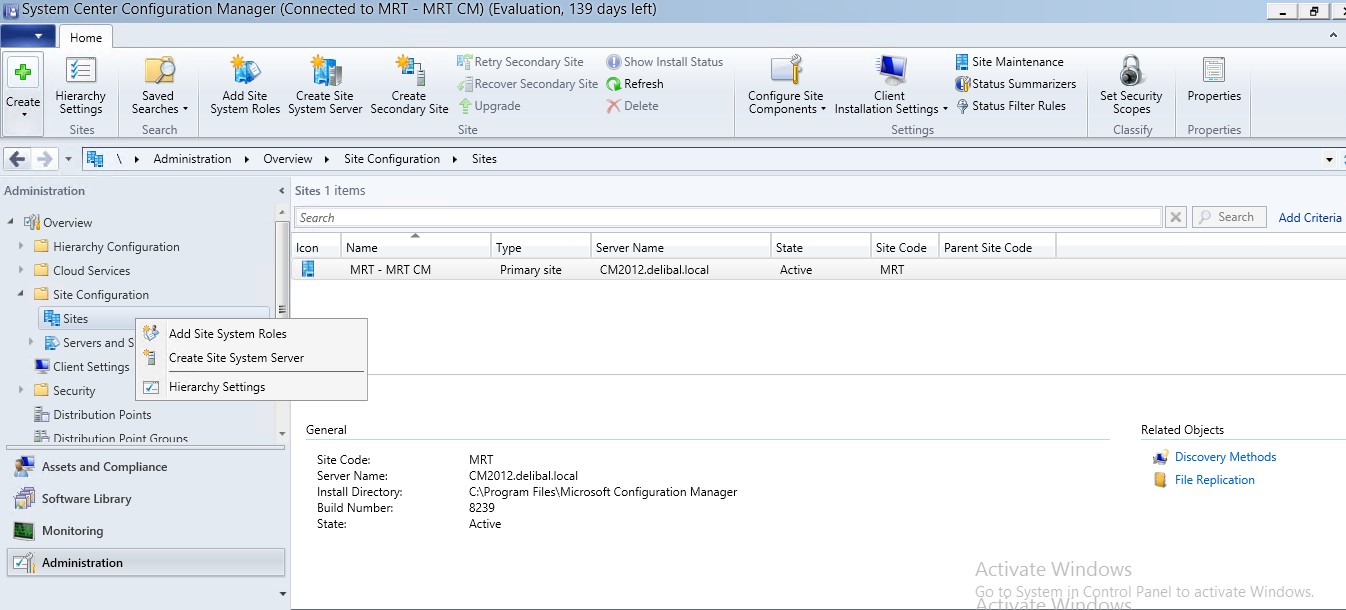 Administration > Site Configuration>Sites’a sağ tıklayıp Add Site System Role diyoruz.