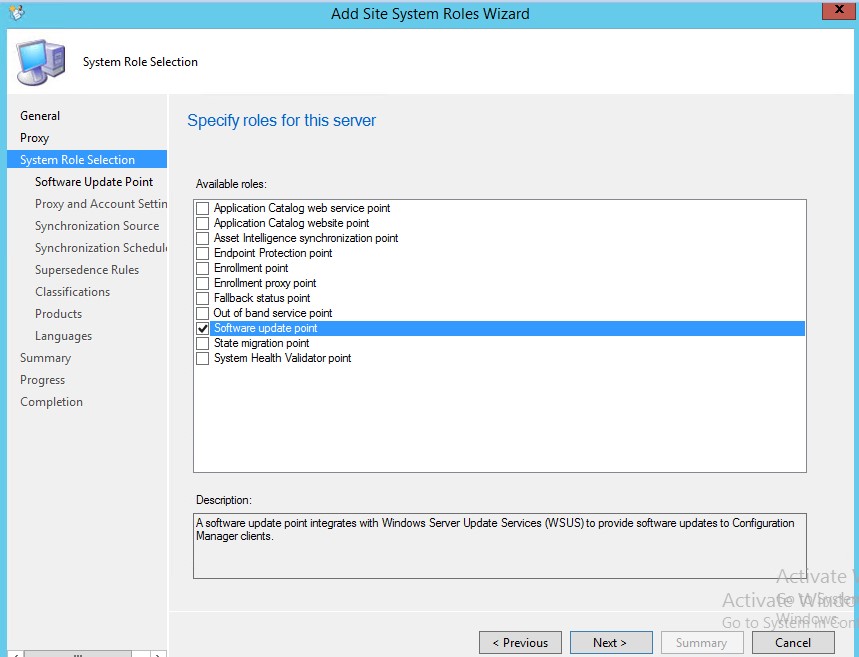 Burda Software update point role’ünü seçiyor ve devam ediyoruz.