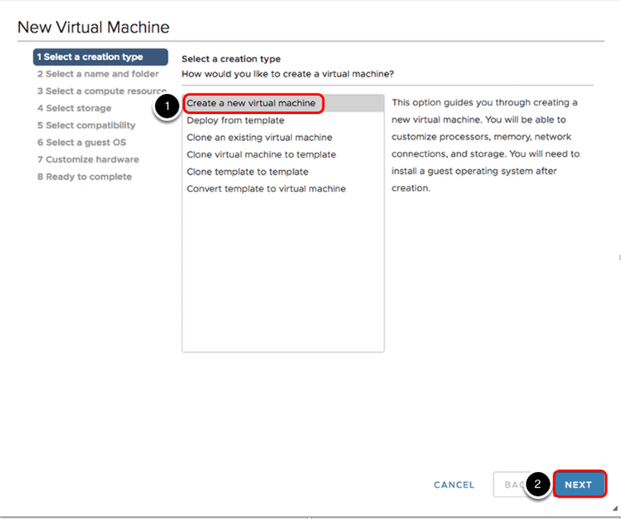 Vcenter’a login olunduktan sonra Cluster üzerinde yada Host’lardan birisi üzerinde sağ tıklayıp New Virtual Machine diyoruz.