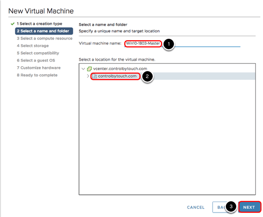 Daha sonraki ekranda Virtual Machine Name kısmında sanal makinenin ismini ve Select a location for the virtual machine kısmında ise sanal makineyi hangi cluster üzerinde oluşturacağımızı seçiyoruz.