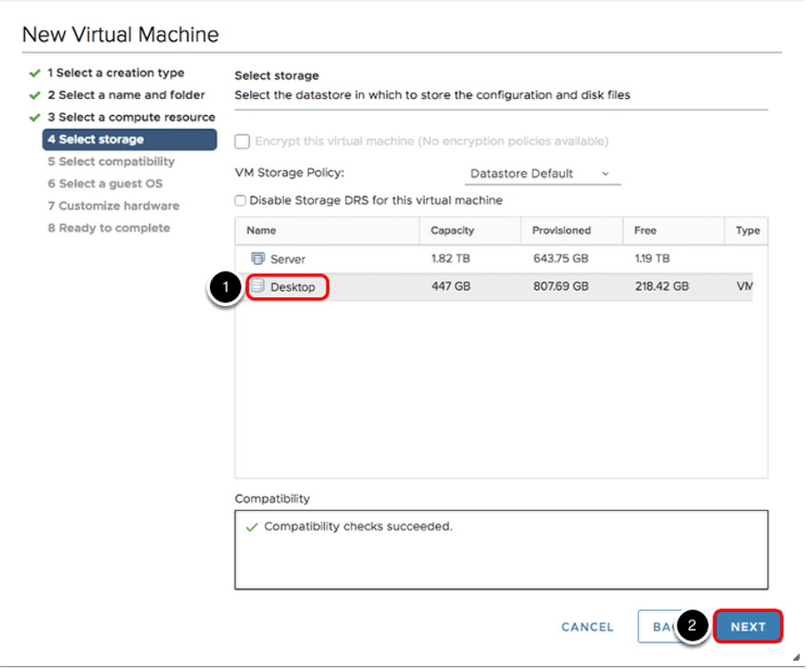 Bu kısımda ise oluşturulacak sanal makinenin disk alanını hangi Storage üzerinden kullanacağını belirliyoruz.