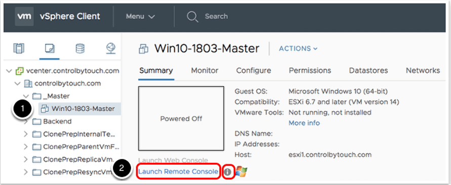 Vcenter üzerinde oluşturduğumuz sanal makinenin Summary kısmından Launch Remote Console tıklanarak console alınır.
