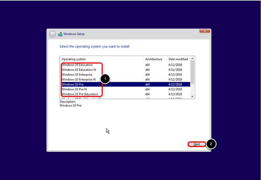Bu kısımda ise yüklenecek olan Windows’u Seçiyoruz.