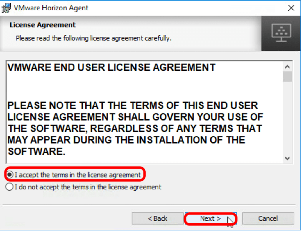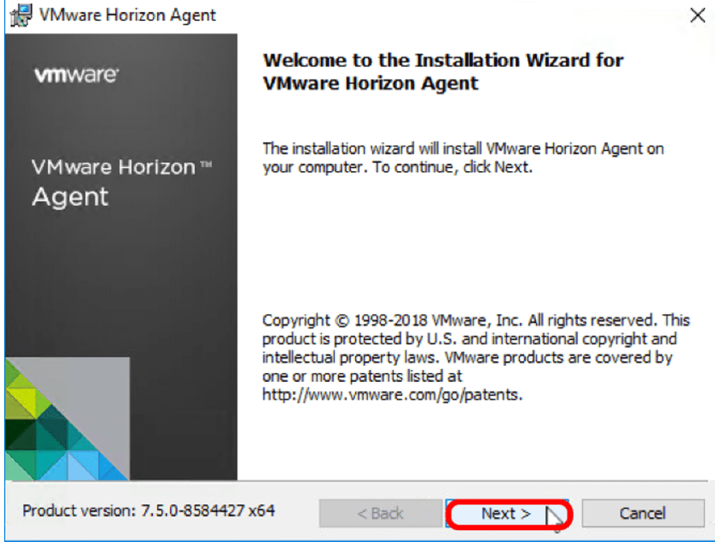 Master image üzerine Horizon Agent Setup dosyası kopyalanır.Çift tıkayıp uygulama çalıştırılır.