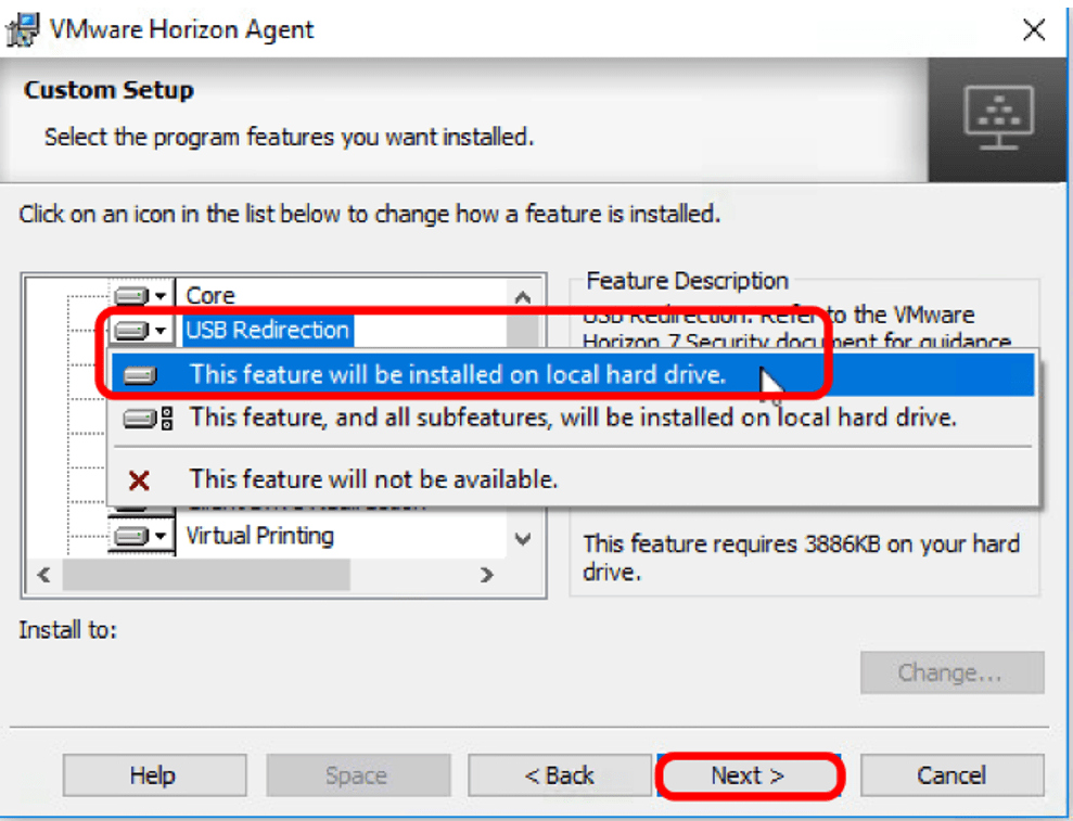 Agent üzerindeki bileşenlerden USB Redirection Seçilir.