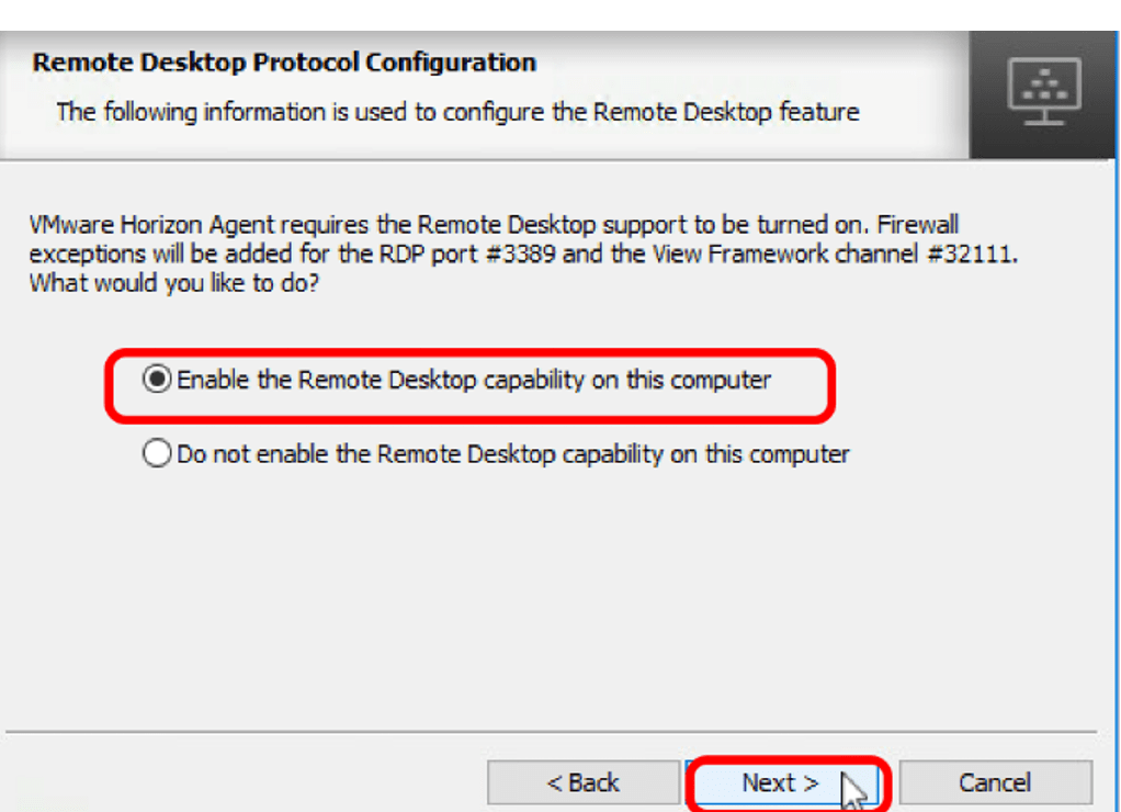 Bileşenler belirlendikten sonra kuruluma devam ediyoruz. Bir sonraki seçenekte Agent yüklenen master image üzerinde Remote Desktop’ın enable edilip edilmeyeceğini sormaktadır.