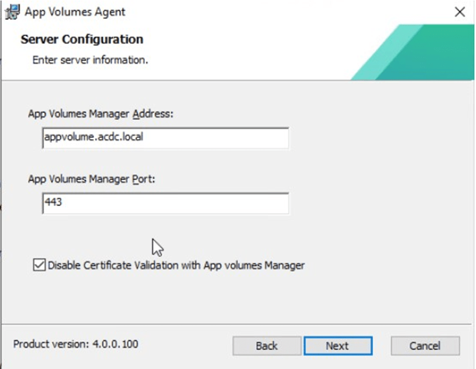 App Volumes Manager ile ilgili bilgileri aşağıdaki gibi giriyoruz .Eğer App Volumes Manager sunucusu üzerinde sertifika ayarlarını yapmadıysanız Disable Certificate Validation with App Volumes Manager tick işaretini işaretlemeniz gerekmektedir.