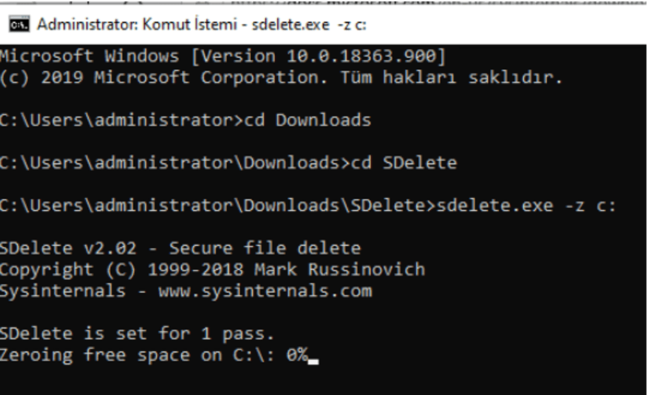 7-Sanal Disk Optimizasyonu (Sdelete)