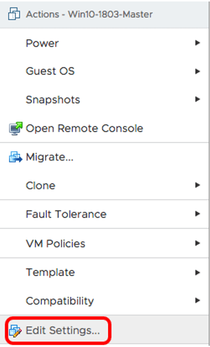 Master image sanal makinesi üzerinde sağ tıklayıp Edit Settings… diyoruz.