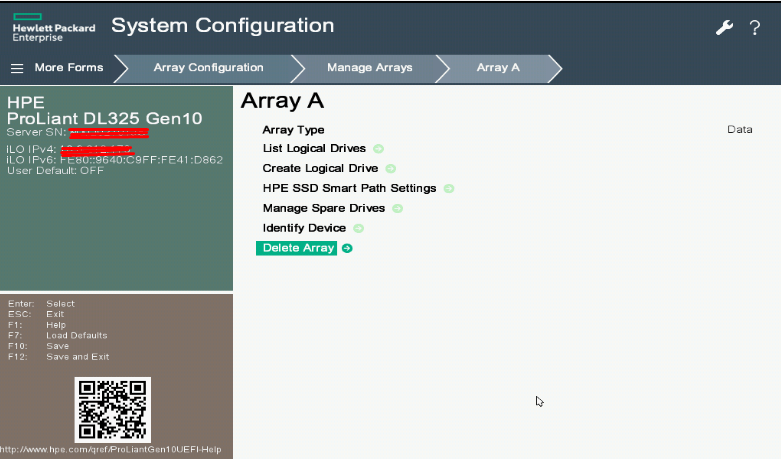 Delete Array diyoruz . Bu konfigurasyon yaptığımız Raid Controller Storage tarafında kullanılacağı için yeniden Array oluşturmuyoruz.