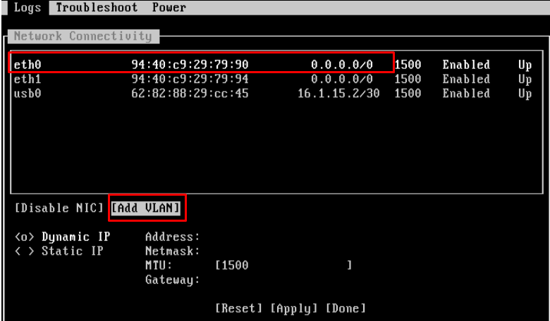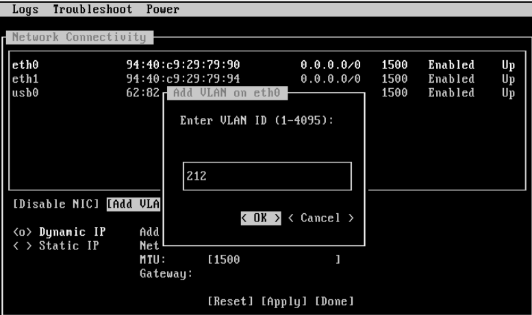 Deployment işlemi sonrasında sunucularımız üzerinde bulunan network kartları access modda tanımlanmış ve DHCP bulunuyor ise otomatik IP adresi alacaktır. Portlart trunk olarak birden fazla vlan geçecek şekilde ayarlandı ise deployment işlemini yapacağımız network adaptörünü seçip add vlan diyoruz.